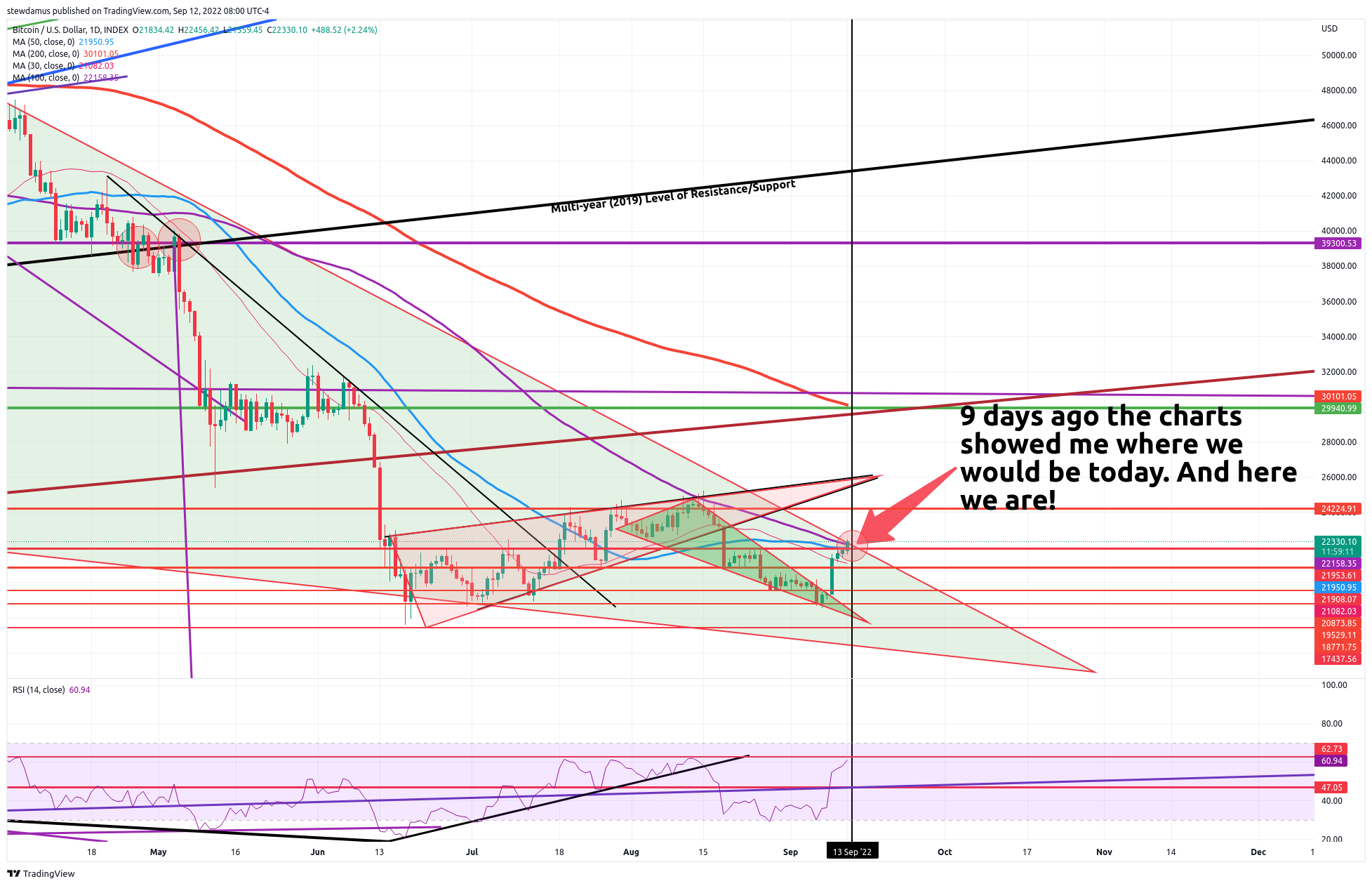 Almost time!#bitcoin #btcusd #crypto #cryptocurrency #altcoins StewdamusSep 12, 202212ShareTechnical analysis never fails to legitimize itself. Combined with fundamental analysis, it’s uncanny how accurate price prediction can be!PreviousNext