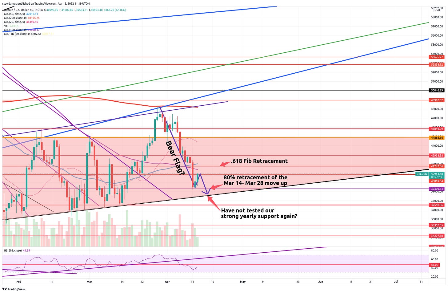 [*] There is the potential that these last two green candles formed on the daily are simply the formation of a new bear flag, in which case, it might move us down further to a re-test of our yearly support.