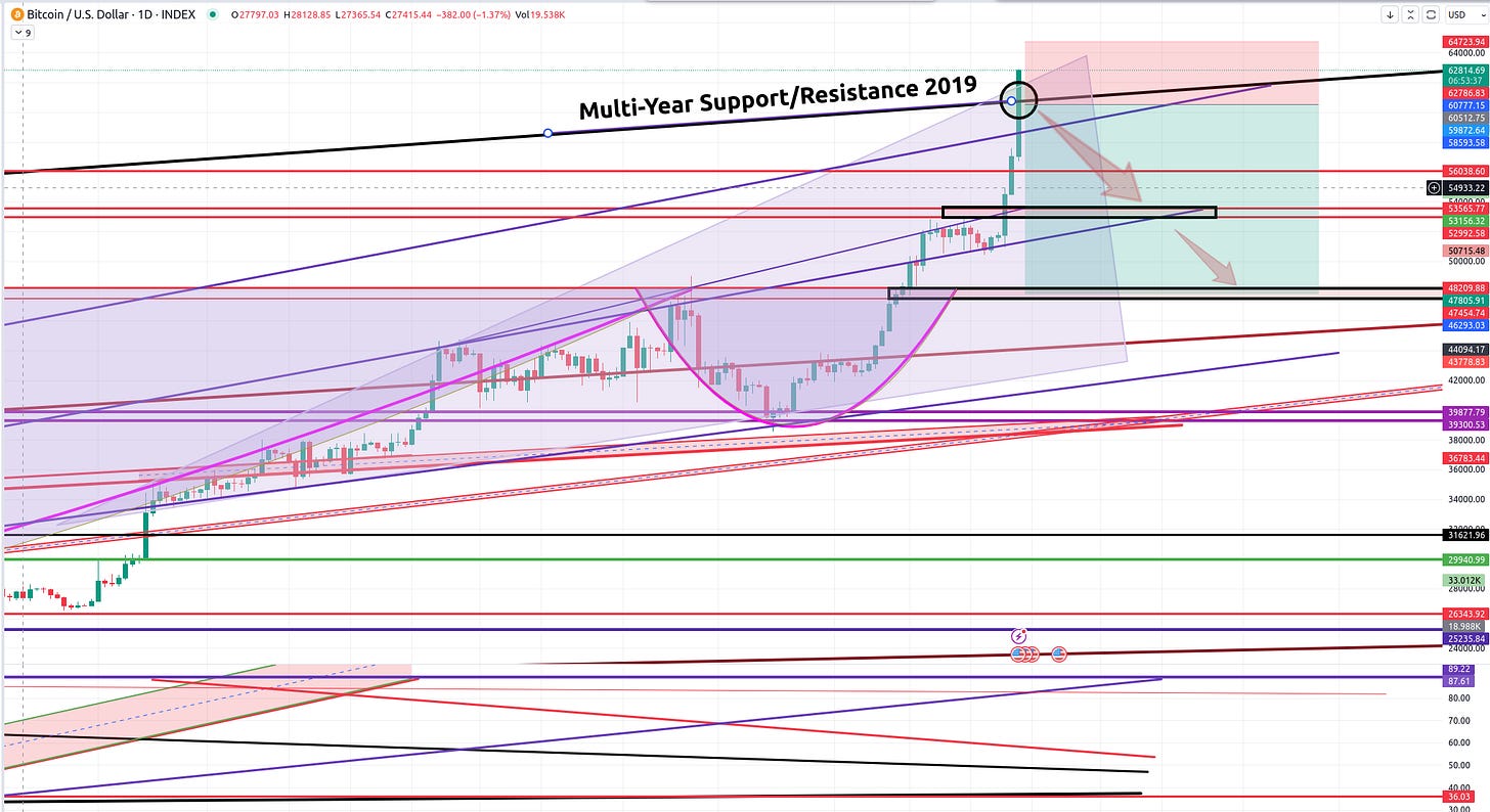 I’ve recognized my stops were too tight on my BTC SHORT trade in this insanely bullish price action today. Thus, I have raised my stop to 64,700. This puts our RRR at 3/1. This will be the max I am willing to lose. Past that and we might have ourselves a mid-cycle blow-off top going on which is ridiculous to even attempt to call. Let’s see what happens here.