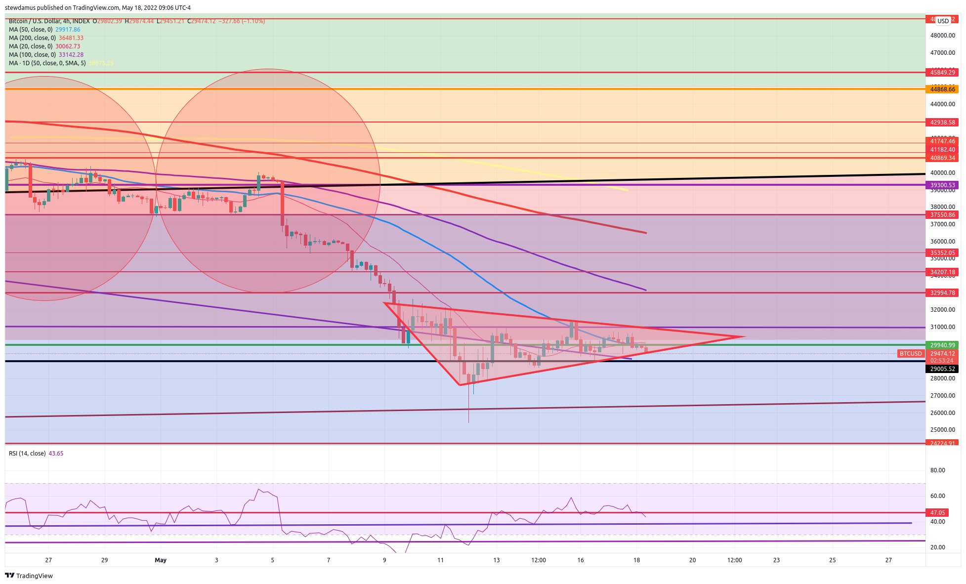 All this to say that in true form of Stewdamus 2.0, I have placed most of my stops in case we do break down further, however, I am also open to the fact that this bear flag may not deserve the same probability score as it usually should. The market could be surprised with a move to the upside as our strong support of $29k continues to hold.
