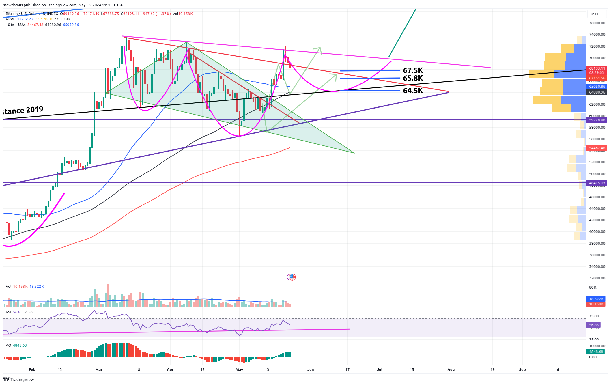 Bitcoin Update - Levels For Accumulation#bitcoin #btc #btcusd #levels #crypto #taStewdamusMay 23, 2024ShareAnd now Bitcoin may continue to consolidate, potentially forming an inverse head and shoulders pattern. Here are my levels for accumulation:PreviousNext