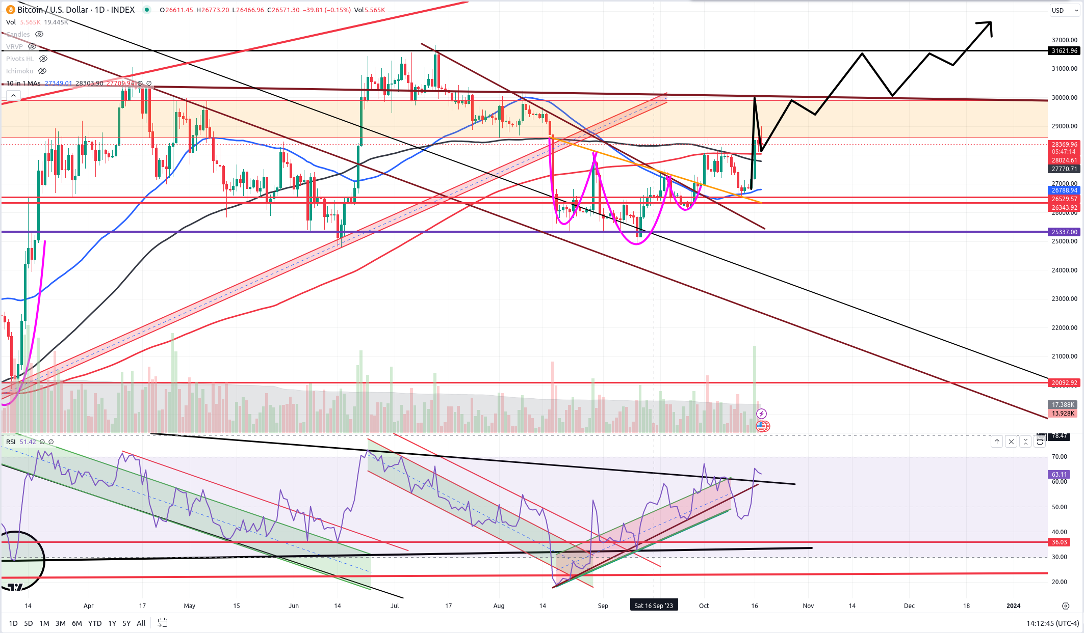 Bought more BTC here. TBH, this just looks like another bull flag. I can see us hitting our heads on the 30k again where I may sell some but eventually, that resistance will break. And I think sooner than later. Then we'll have to tackle that 31.6k level. If we can break above that, my prediction from Jan-Feb still stands - 37k by the end of the year.