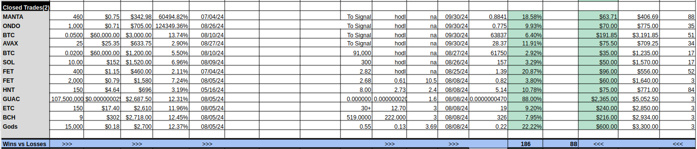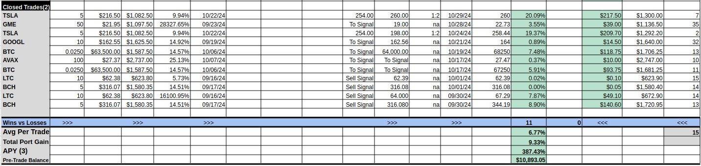 The spreadsheet for my closed trades has been sunset. Instead, I will regularly sample a screenshot of my recent close trades and win-to-loss record. You will also be able to view ALL CLOSED TRADES at the bottom of each of the stocks and crypto Trade Trackers.