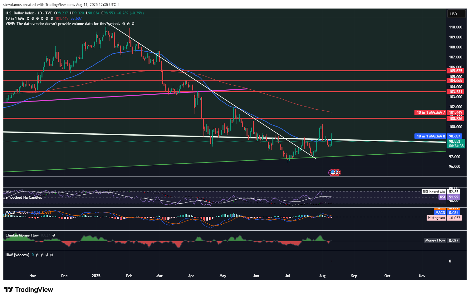Now onto stocks, though obviously, this information is also relevant to crypto. A weak dollar equals higher prices for everything, including crypto, and what happens to stocks generally spills over into crypto. That’s partly why we track the SPY so closely.
