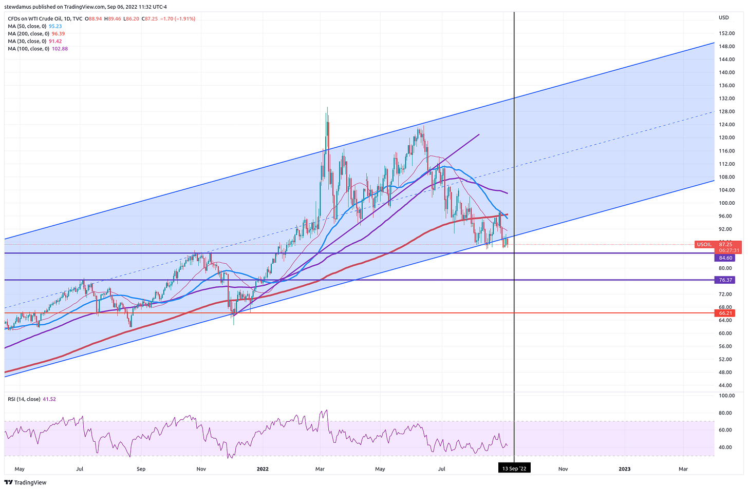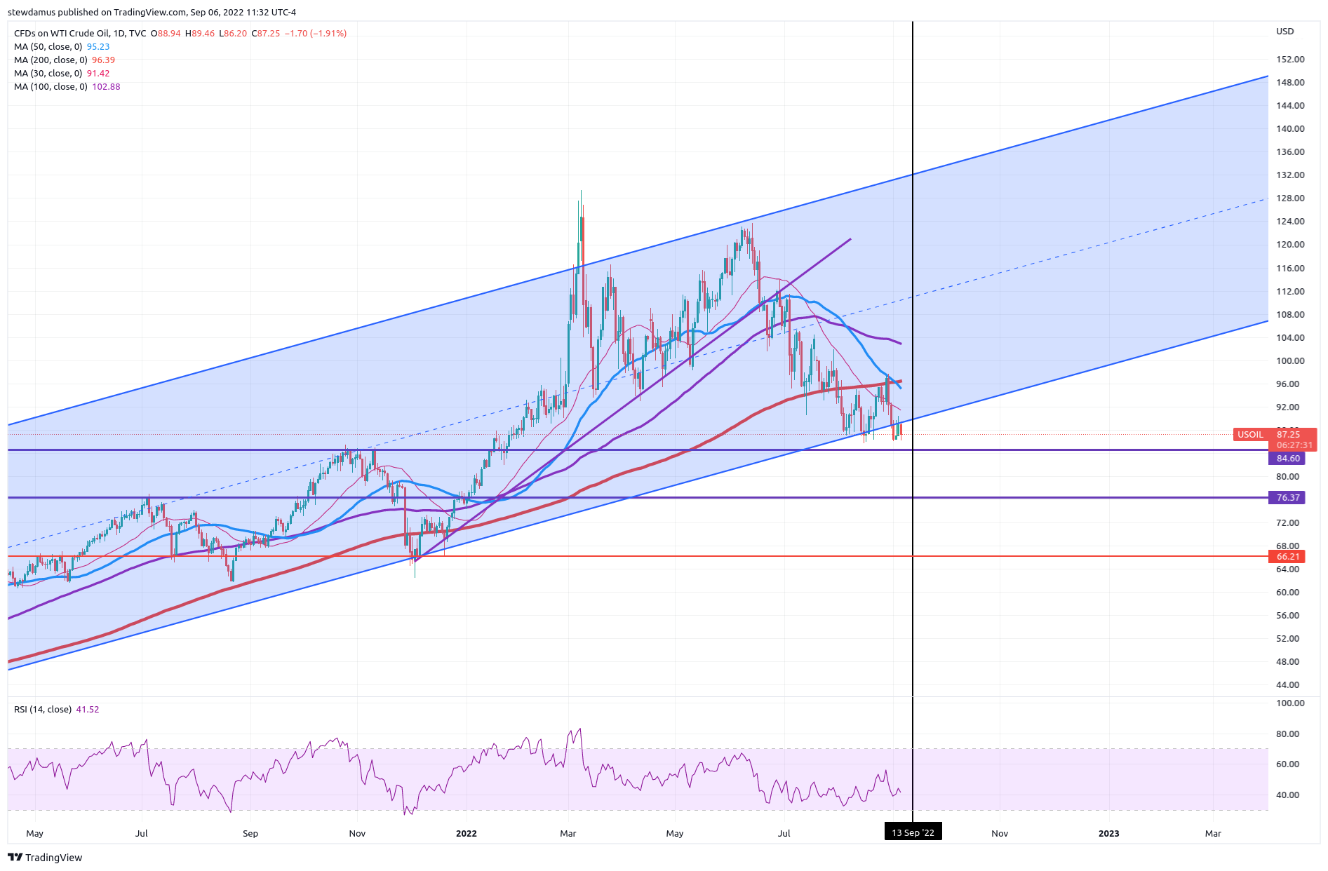 The first is oil which is the leader in the energy sector. Oil is showing waning demand globally. This shows cracks in the major economies of the world, especially China, and China may very well be the first domino to fall in a row of dominos that could lead to a major macroeconomic recession slash depression. Please let me be wrong about the depression part. For the first time since March of 2020 US Oil has fallen below our ascending channel, a major disinflationary indicator, which, as I have stated, leads the energy sector. Demand always trumps supply and when demand is low for energy, it is telling us something about what may be coming in the next year or two. The fed will most certainly consider and digest this demand data.