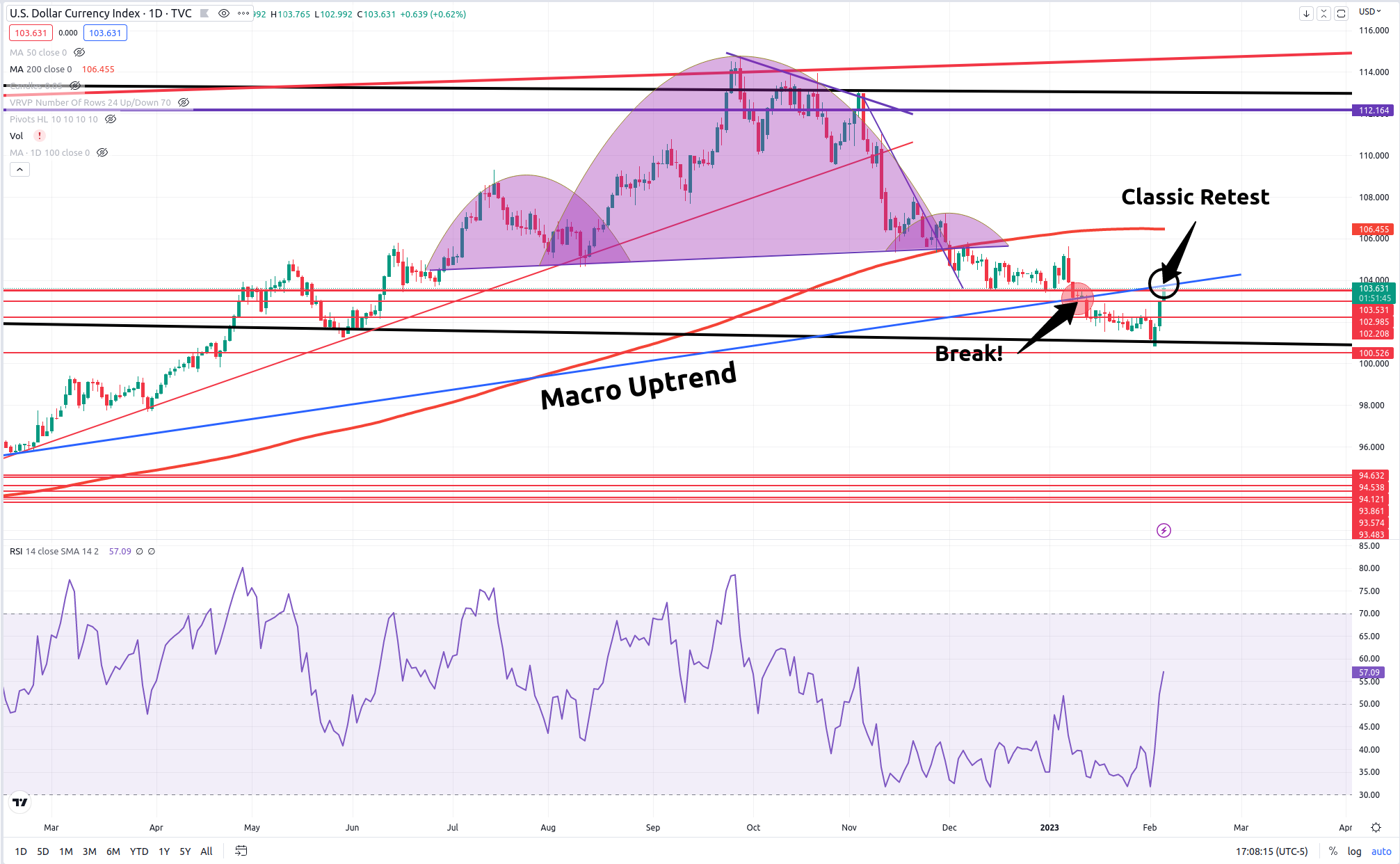 From a technical perspective, the dollar is doing exactly as it should. Technical analyst should have expected a retest of what was previously very strong support. We have now observed that retest and the dollar has permission to continue its descent. If descent is not immediate, sideways action can be expected. But, least likely, is the possibility that the dollar re-breaks the macro uptrend to the top side. Vix data correlates with the continuation of the dollar's descent.