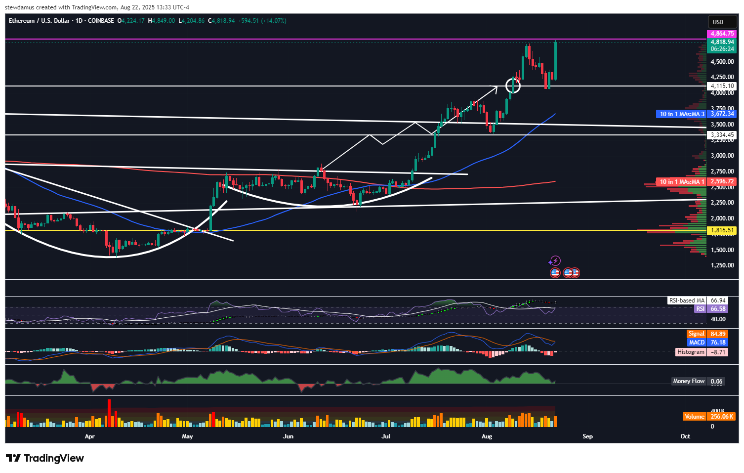 I’ve been very vocal about the Ethereum $4100 level. This level needed to be held as support for Ethereum and the altcoin market to continue its move higher. I expected it to hold. It did.