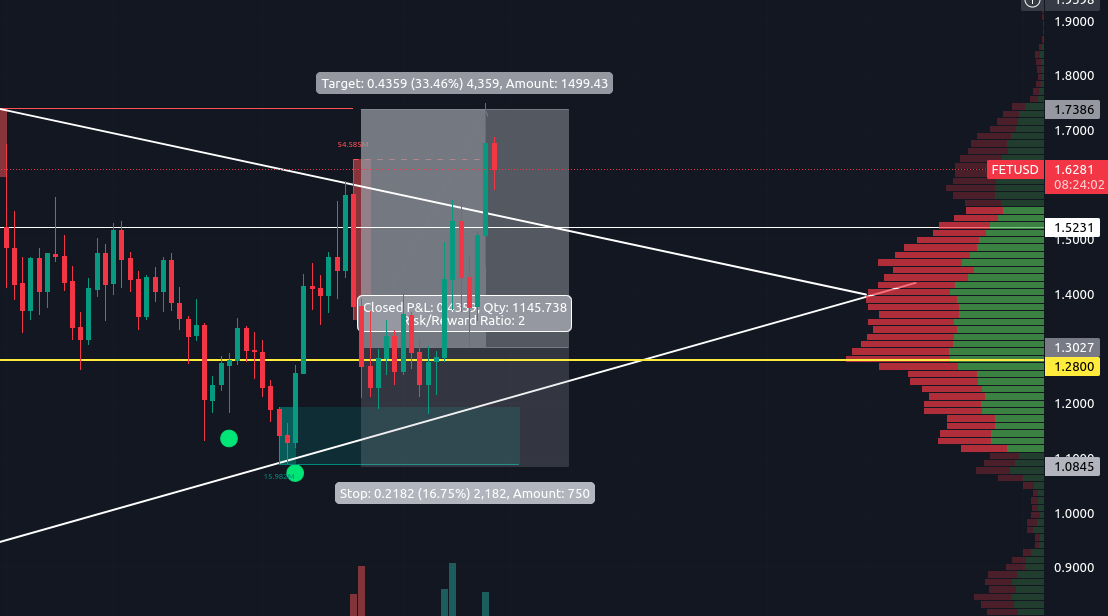 Congrats traders! We have done it again. Fetch reached its final target yesterday and 50% was immediately sold for 33% profit. As usual, I will now let the remaining 50% ride and have raised my stops up halfway in case we do drop from here.