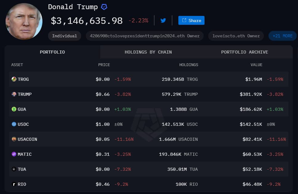 What is clear is that the Trump admin is pretty vocal about their pro-crypto bias. And the other thing that has become clear is that they are buyers and hodl’ers of certain crypto, even memecoins (some of it Trump-related though of course).