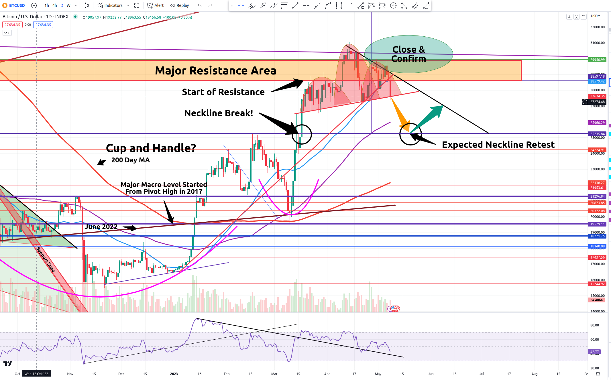 Head and Shoulders pattern. Now on the neckline. If it breaks, 25,200 is definitely in the cards sooner rather than later. And, from a technical perspective this would be both beautiful and extremely bullish Bitcoin! You all know I have been anticipating this retest for over 5 weeks now. Let's see if we can achieve what would become a gloriously bullish retest of that C&H neckline!