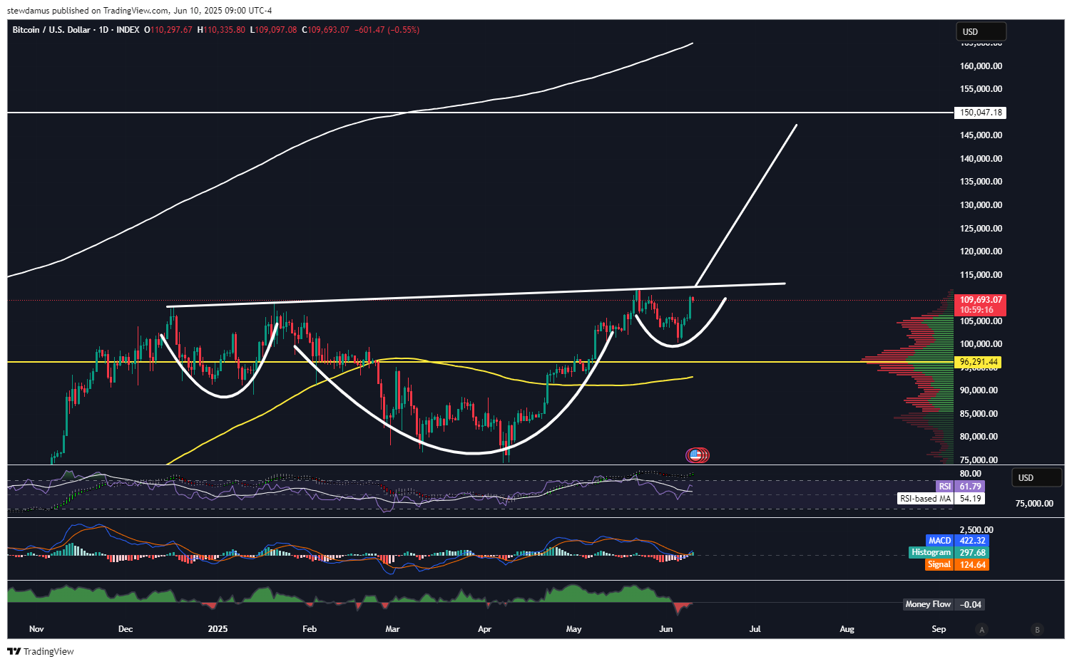 It has now become apparent that Bitcoin has formed an inverse head and shoulders pattern on the daily. This is very bullish and should the pattern follow through, it gives some good long-range targets to shoot for by the end of this year and potentially, well into the next.