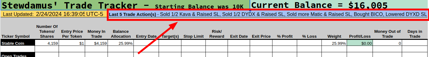 For those of you following my trades, keep a close eye on my Trader Tracker as always. I think I have everything up to snuff and will stick to the data I have at this point. If anything changes look near the top. I usually am good about posting my last 5 trade actions on the sheet: