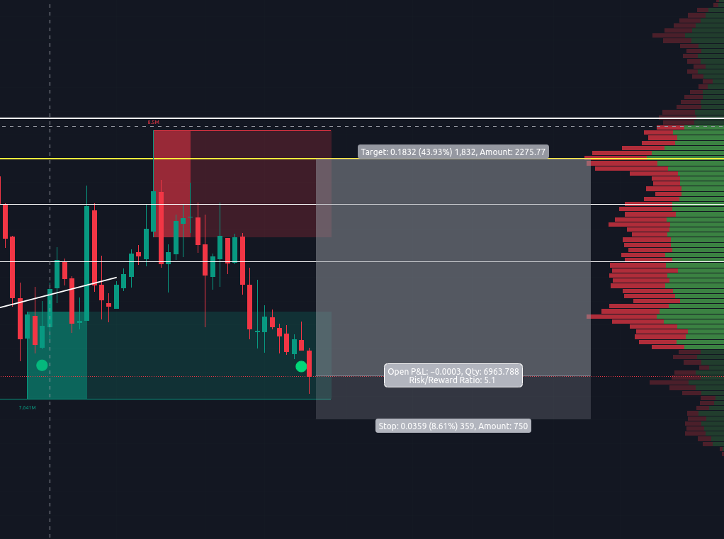 In this case, my indicator has provided us signal within the liquidity block. I will be shooting for 43% profit at least. This could change as I observe market price action. I have a tight stop implemented for a 1:5 rrr.