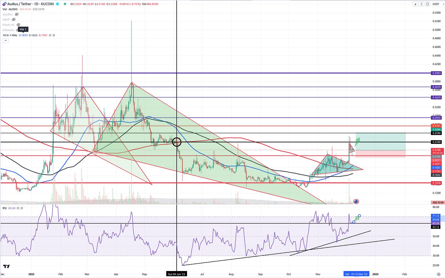 Long Audio#audio #altcoinsStewdamusDec 08, 20231ShareI’m going long Audio here to 26 cents. SL 20 cents. Entry was 22. RRR is 2.5.StewdamusLinksstewdamus·June 5, 2023Read full storyPreviousNext