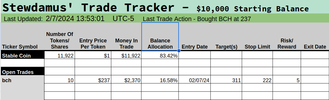 Risk/Reward on this is a healthy 5/1 with my stop out placed at 222.