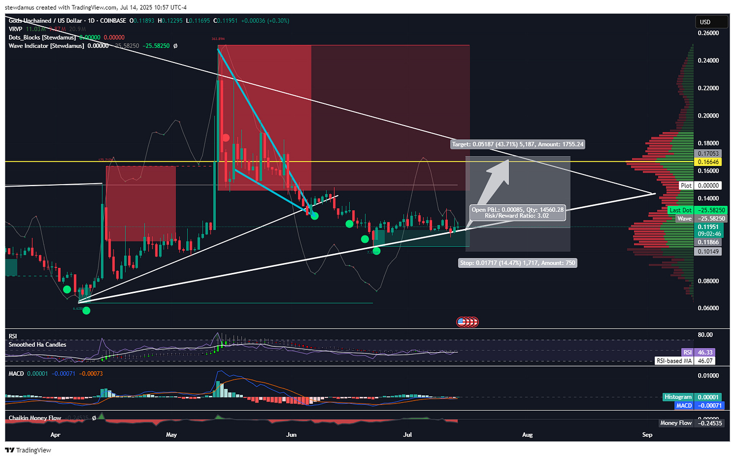 I'll be targeting 17 cents with an SL at 10 for a 1:3 RRR.