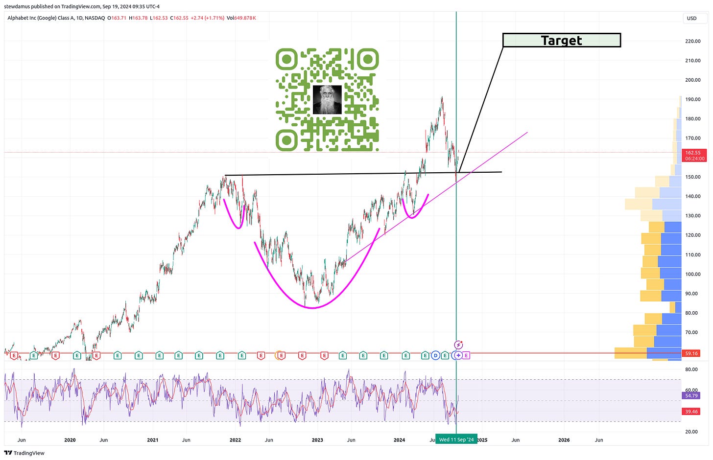 A long signal was given by my indicator combination on Sept. 11th. Additionally, you can see the potential inverse h&s pattern supporting the signal. The pink ascending tl is also still holding for support. Target would be around $220 or once my signal flashes red whichever comes first.