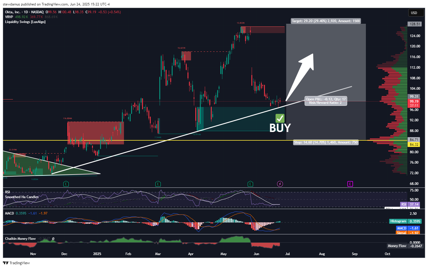 Long OKTA To 128.50 For Nearly 30% PP. 1:2 RRR.