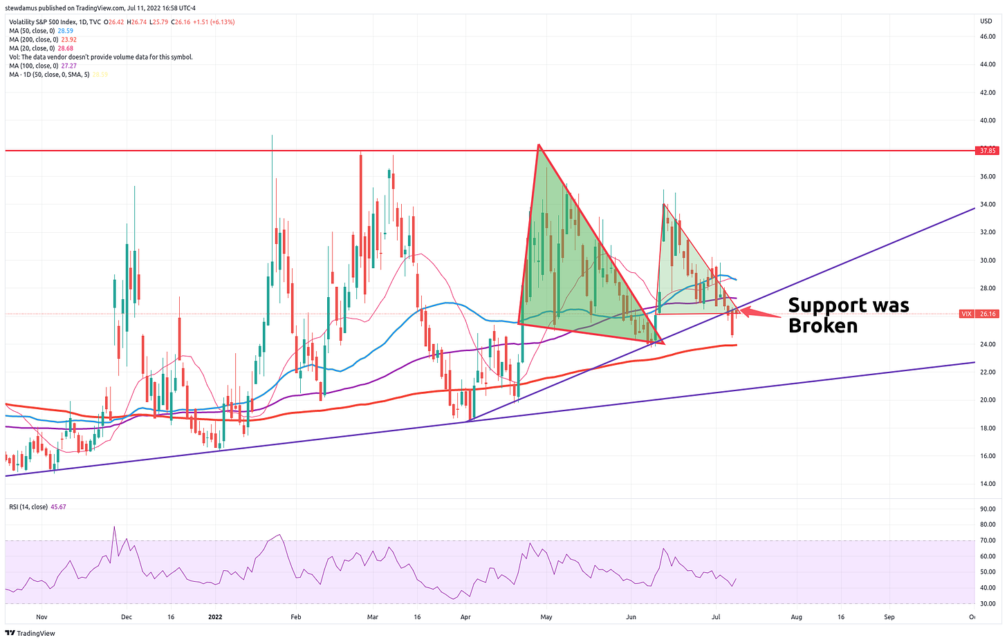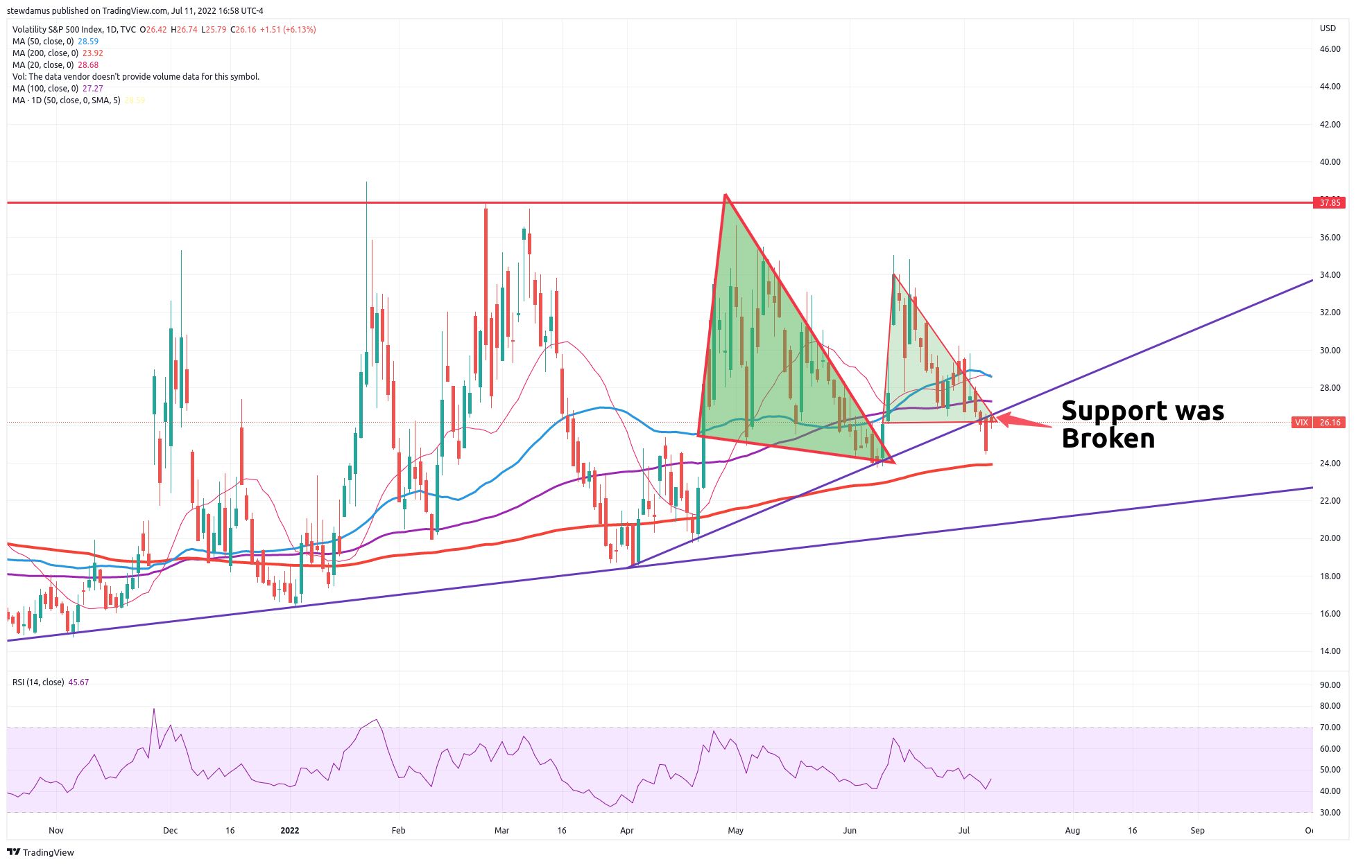 The VIX may be giving us a hint here as it has broken down below our support and I think it may continue down. When fear drops, the market pops.