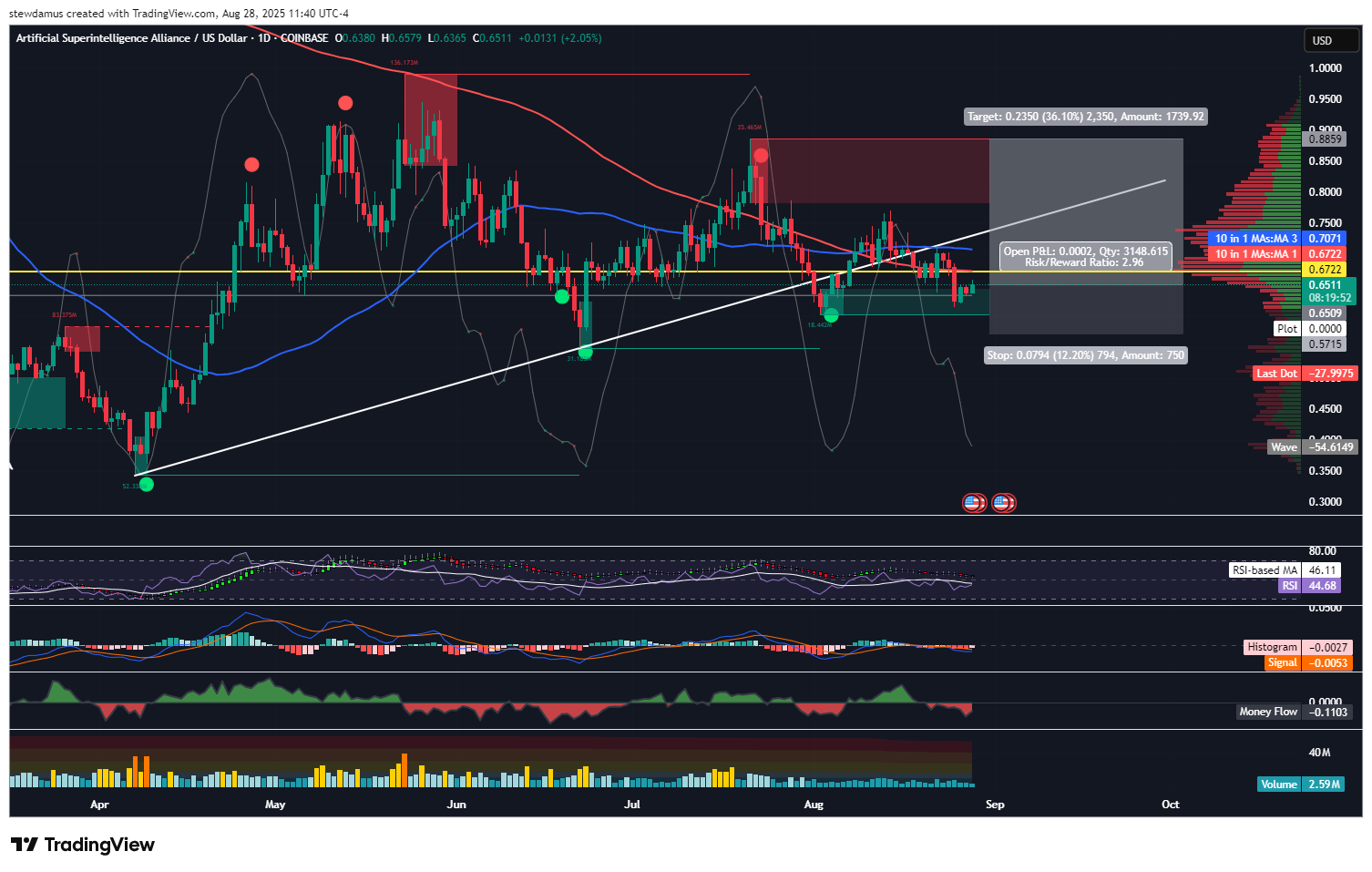 Fetch AI runs hot when it goes. Recently, I received a BUY alert from my indicator letting me know that weβre getting close to another run soon. I have entered here and will have a fairly conservative target of .88. My SL is .57, giving me a fairly modest 1:3 rrr. My plan is to sell half at the target and let the rest ride. Of course, that could always change with time so, keep an eye on my trade tracker below.