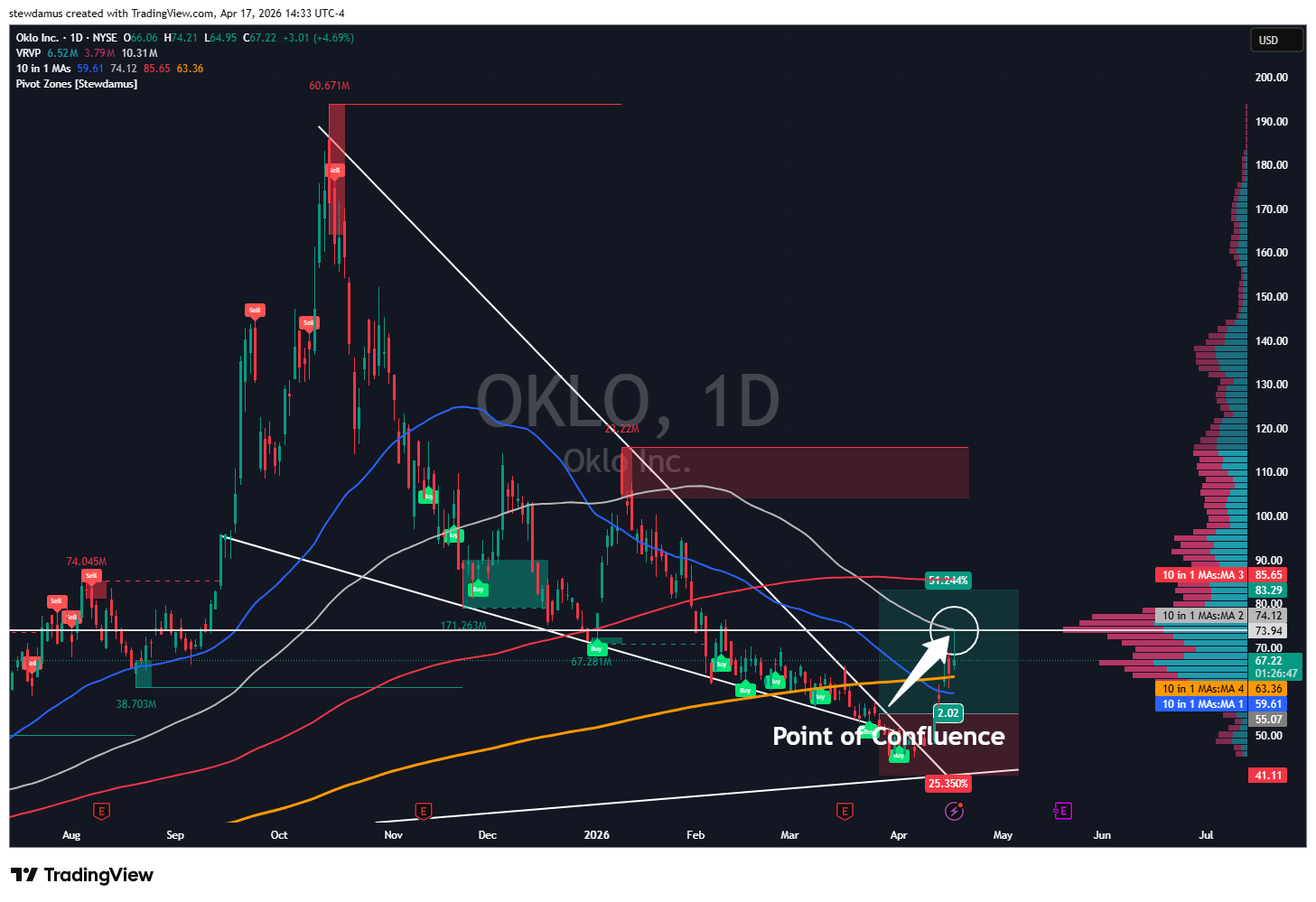Though we are slowing the pace of trades in this volatile market climate, we are still able to capture wins on the best selected entries. OKLO was one of our few trades this last month. Imo, that’s okay. Not trading is also a risk. It is a risk because while that cash is sidelined, we may lose out on opportunities if/when the market takes off. But if done right, it is a way to preserve capital. These last few months, we have done well at both preserving capital while the market has faltered and dropped, and we have also had a few opportunities to capture a few profitable trades. OKLO is one of these trades.