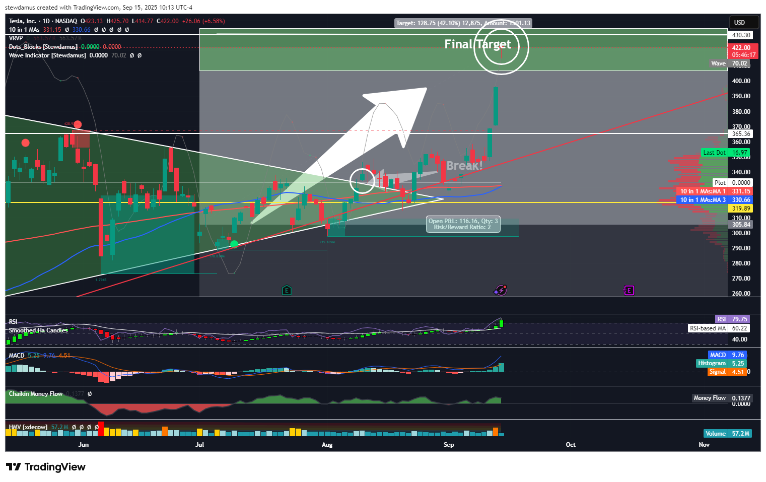 We nailed yet another win as we’ve hit our final target again. This time on TSLA. I took some heat in entering this trade. Many good traders (bears) were criticizing my long entry, claiming the price was about to fall out. I trusted my indicator, which told me to BUY, and we’ve now cashed out at almost 40% in pure profit on this trade, and those shorts were rekt. Congrats to all who followed me!