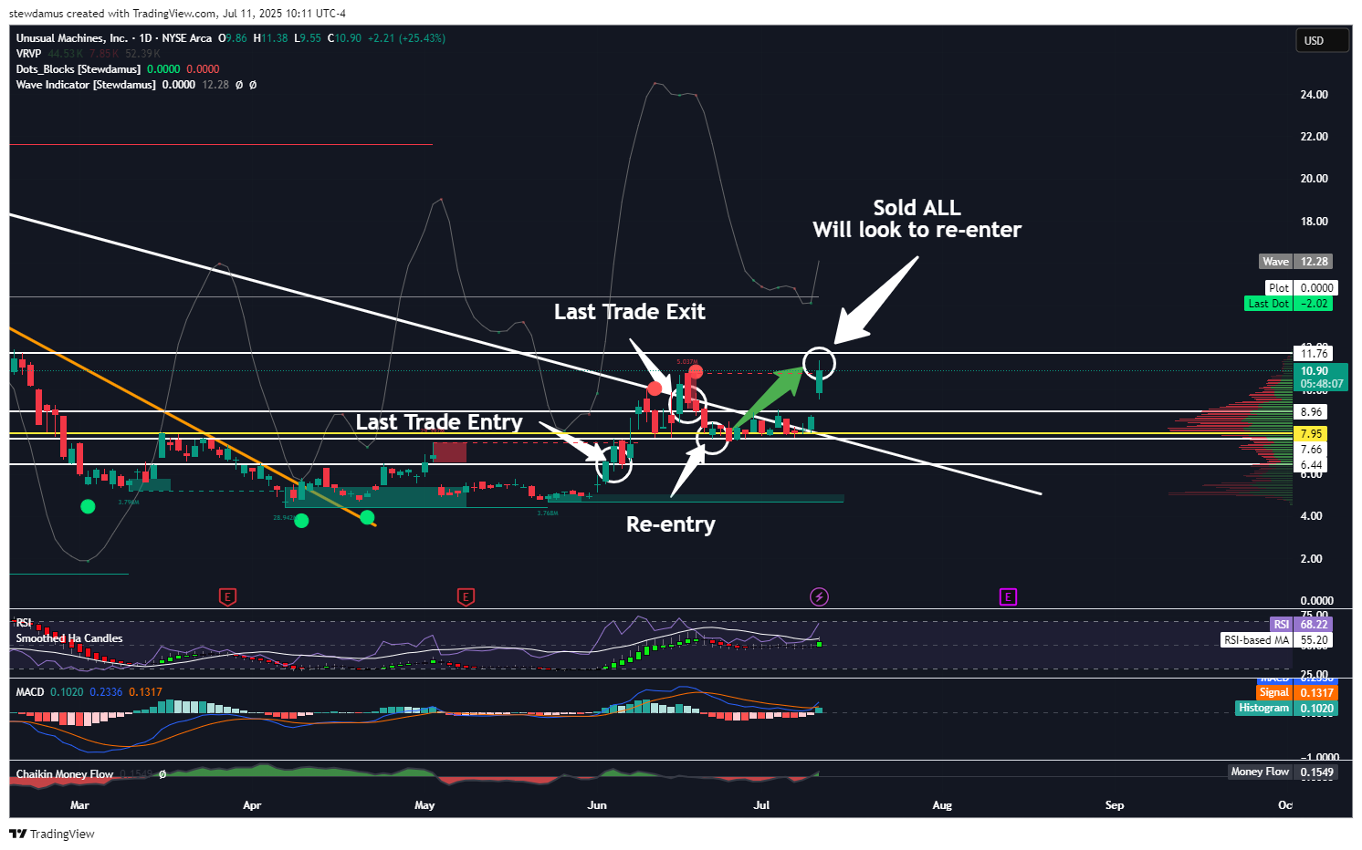 I will look to re-enter UMAC 0.00%↑ should we drop back down to about $8. Stay tuned here, and I’ll let you know.
