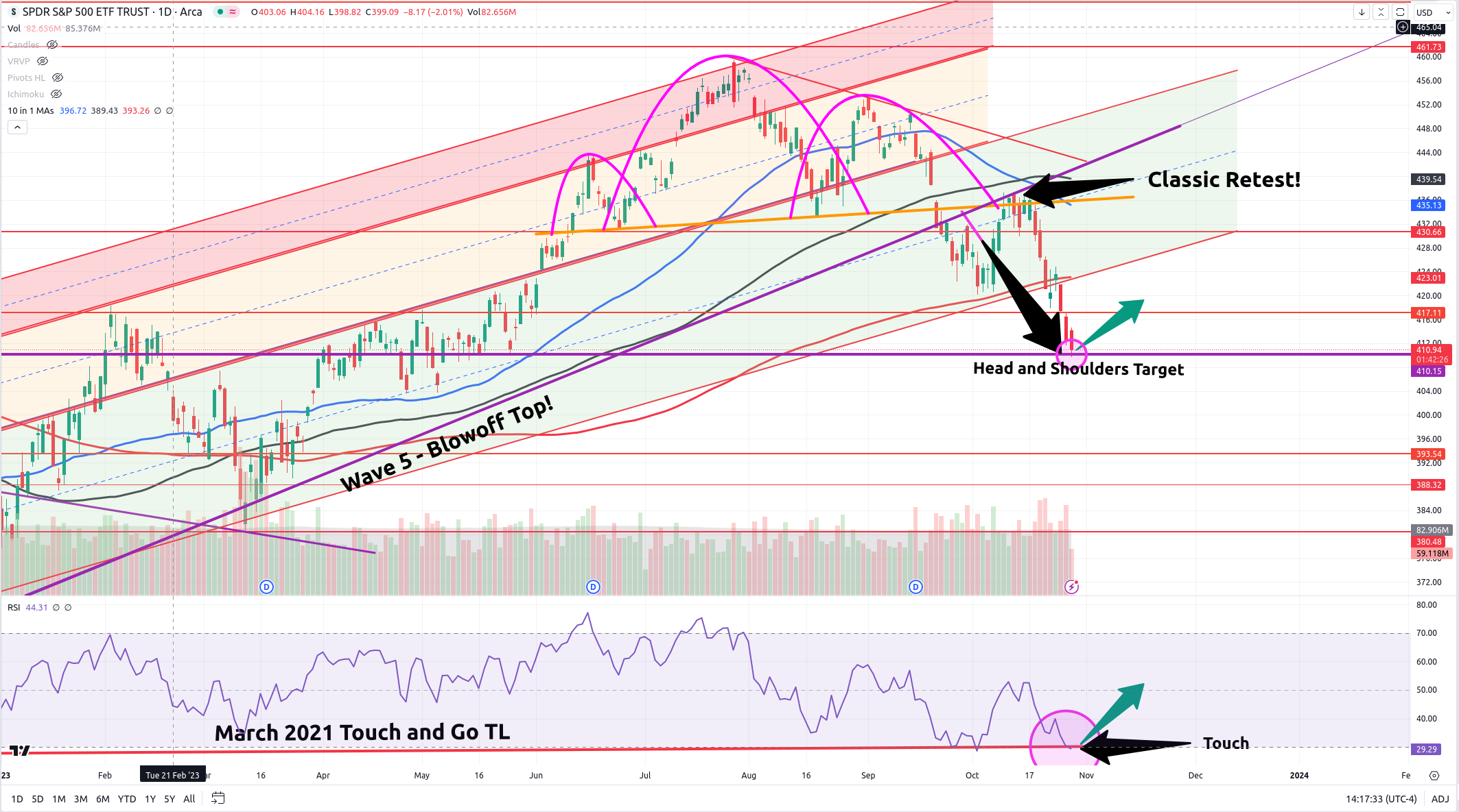 SPY Has Now Hit Its Target Down of 410. Now We Bounce.