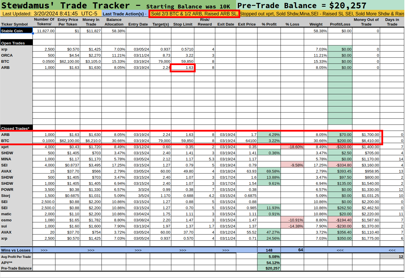 Taking Profit on BTC and ARB