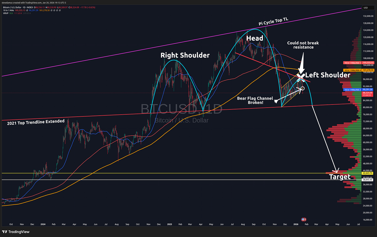 My old followers know that I ignored the Head and Shoulders pattern I spotted last cycle. Though I got a much higher ratio of “likes” on that one post because I continued to believe in hope and hype ...I paid dearly.