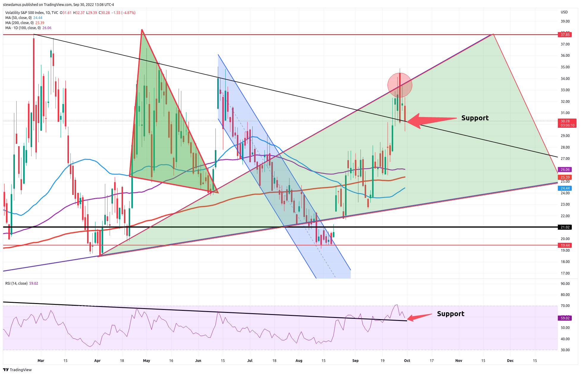 Earlier this week, I suggested that red candle, highlighted by the red circle, might become a blow-off top. It was. Now the VIX has come down to significant support which it currently rests on as I type. If this breaks, it could become an early indicator of a potential future fed pivot. Or, it may just have more to do with this insane war in Ukraine that none of us rationale human beings appreciate in the least.