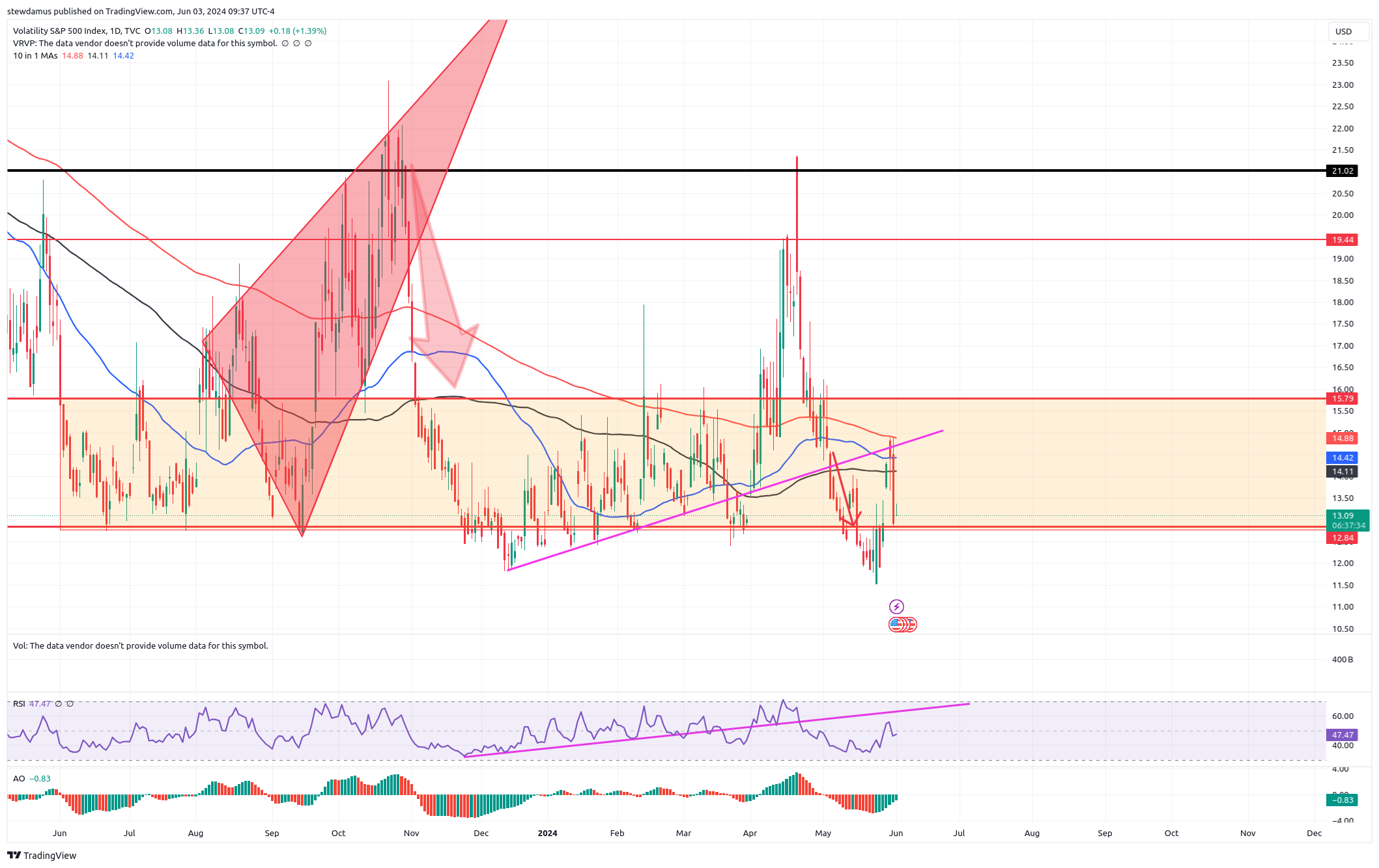 The VIX remains rangebound and in very good territory all things considering geopolitically and globally. No one can predict the future but as long as there isn’t any earth-shattering news, fear will probably remain low, given the exception of U.S. election shenanigans coming up. Be aware here that my prediction is that at the last second (and really when it is far too late) they will pull Biden out of the race. Many will not be expecting this (though, I am astounded at how they will not) and it will cause massive volatility in our markets again before settling down.