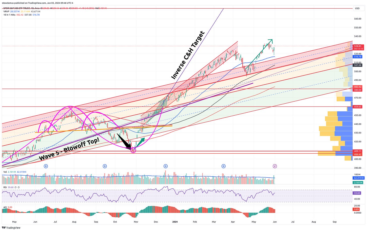 With the dollar trending down and the VIX at low levels, we can then continue to expect the U.S. stock market to continue to rise. And, in fact, that is what we are witnessing as we close in on the blow-off top target of the Elliot Wave theory that has resonated with my instincts for these last 2 and a half years. We are currently in wave 5 and on our way to the target I have set of SPY 570-600. There is still time and I believe we will easily get there before U.S. election shenanigans begin to unfold. Once you start to catch wind of anomalous election news events here in the U.S., know that we are near our top. For me, it will be time to pull out.