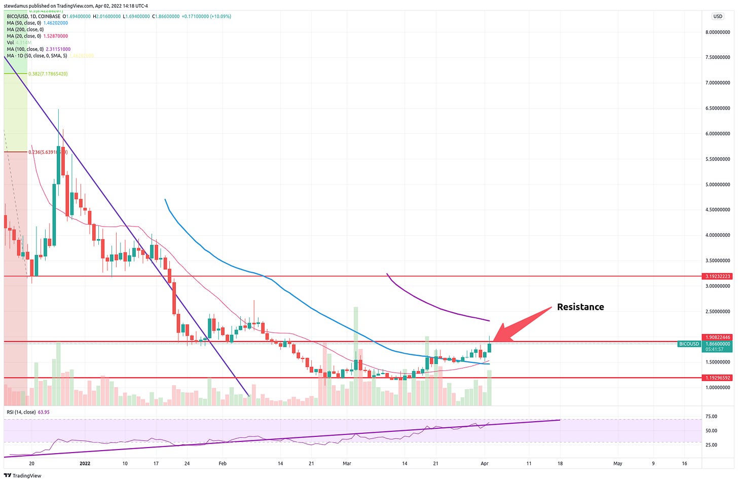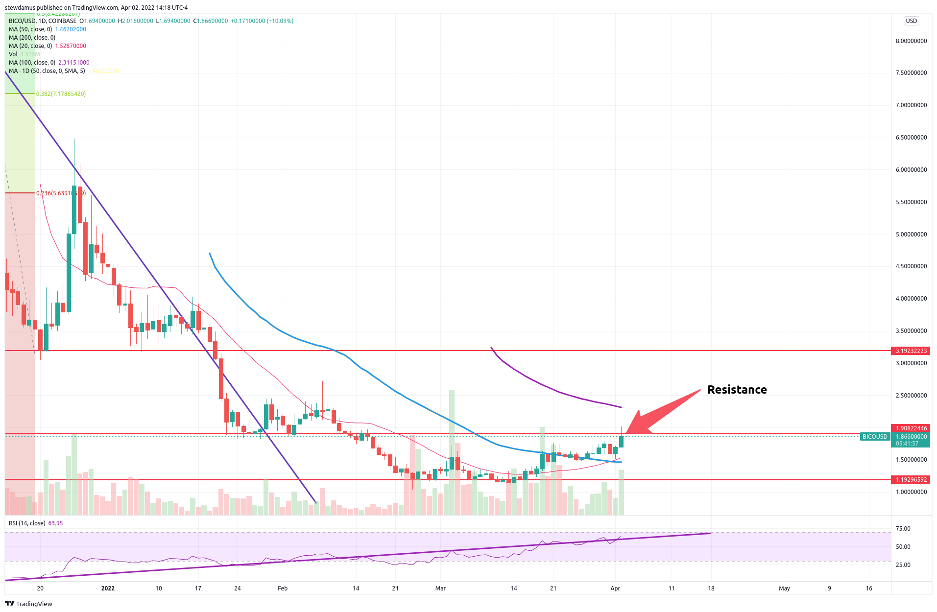 After gaining a solid 60% on BICOUSD, I’ve decided to sell. We’ve run into resistance at $1.90 and I don’t like the shooting star candle that may be starting to form here. I’ve gone stable for now. I’ll let you know in future post should that change: