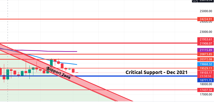 In my last post, I showed you how happy I was that BTC was performing a healthy retrace back down to our critical support at $18.770. I don’t know if it will actually retrace to that level but, just in case, I have put in a buy order at $18,773 with 5x leverage. I’ll let you know if/when it takes along with TP/SL levels in a future post.