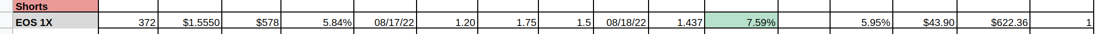 I have taken 75% of the top of yesterday’s short on EOS for 7.59% profit. I will leave the remaining 25% on and let it ride for a bit more and then I may look to re-enter a long on this one.