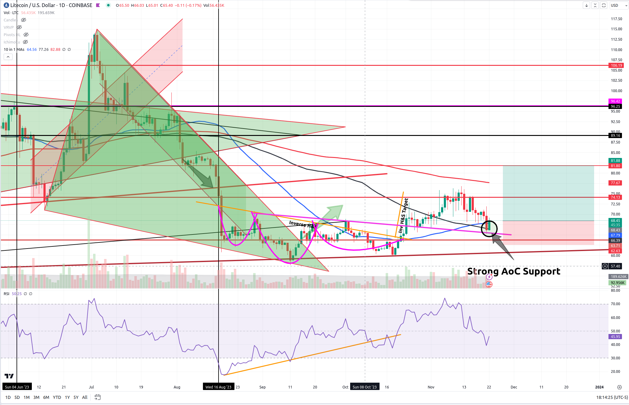 I like Litecoin here. Especially before the holiday weekend. Litecoin has been a little bit of a laggard here in these most recent altcoin pumps. But I love that its got pretty decent support rn on the underside with that 50 day SMA, 100 day SMA, and previous inverse H&S neckline now all acting as support. Additionally, that RSI is right down where I like to see it. I've entered long at 68.43 with a target of around 81 and a SL of 62.50. R/R ratio is just over 2.