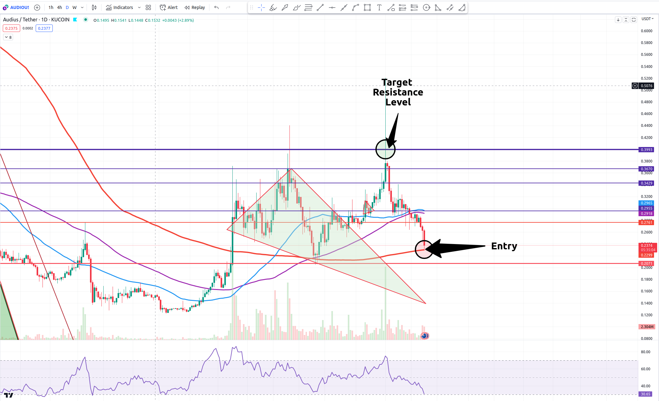 Audio too has reached itβs target down with a touch of the 200 day ma as I have been expecting for some time now. Picked some up at .23 cents. SL just below that .20 cent support somewhere pending RT. Selling along the way up at the various resistance levels above. May hold some to that .39 cents mark again.