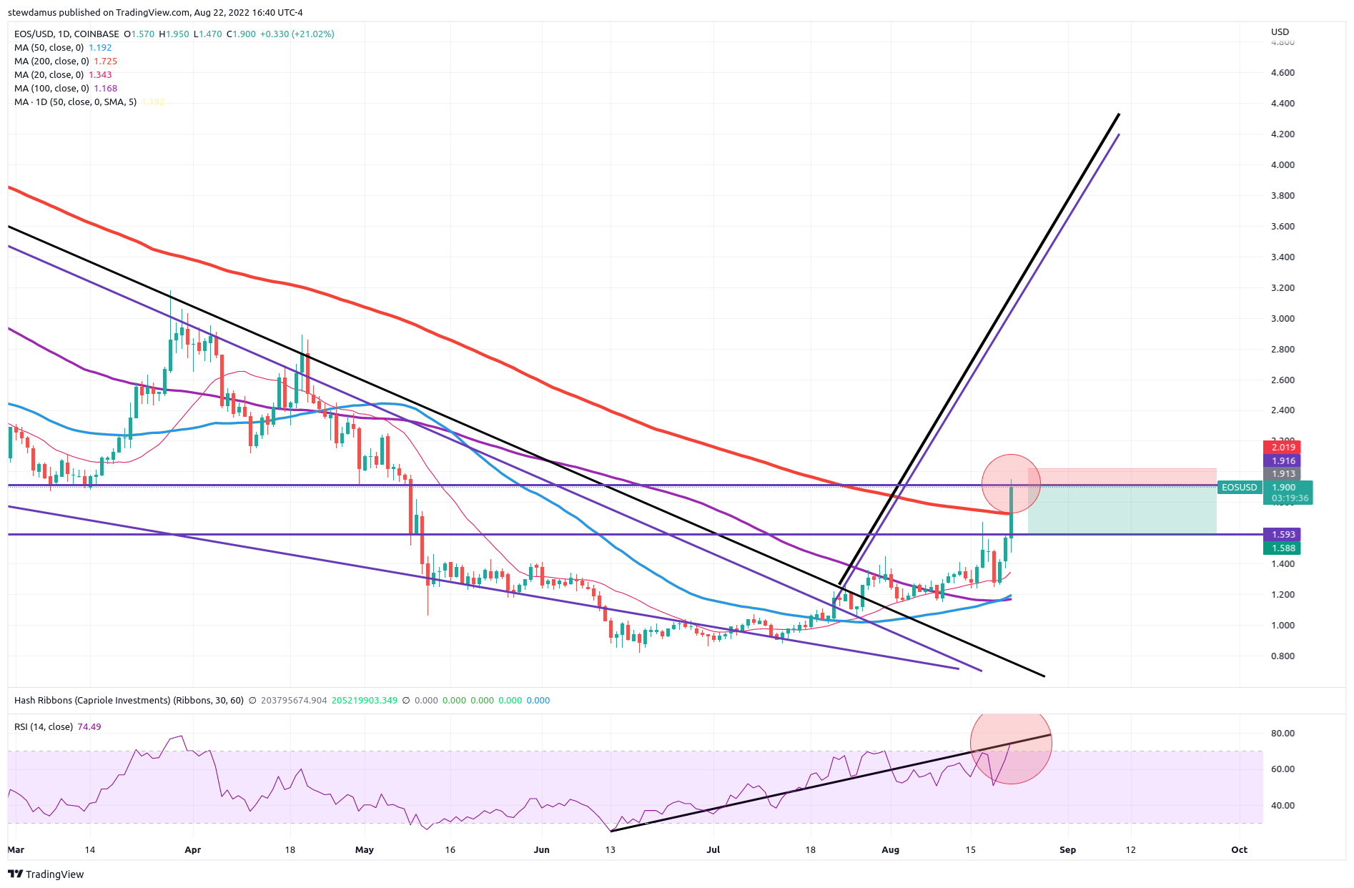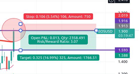 Shorting EOS here. Entry 1.90. Target 1.59. Profit potential 16%+ for a 3/1 r/r.
