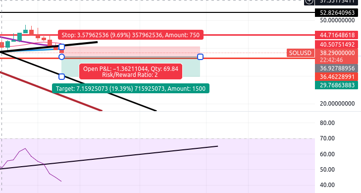 Shorting Solana here. Target down is $30 for 25% profit on no leverage. Trade Tracker to be updated soon: