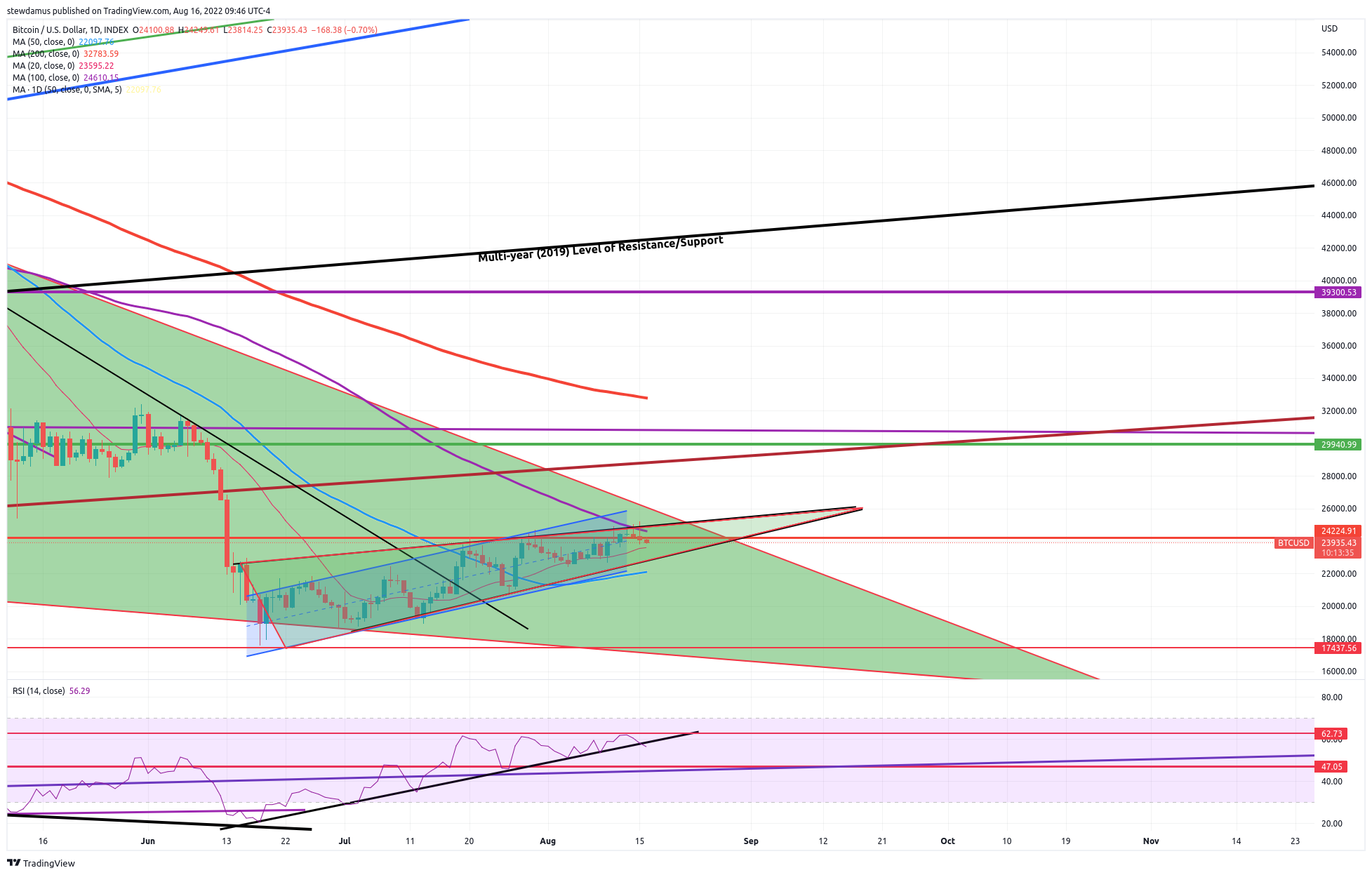 4. BTC back under $24,200, in an ascending wedge, and with the 100 day ma moving down overhead: