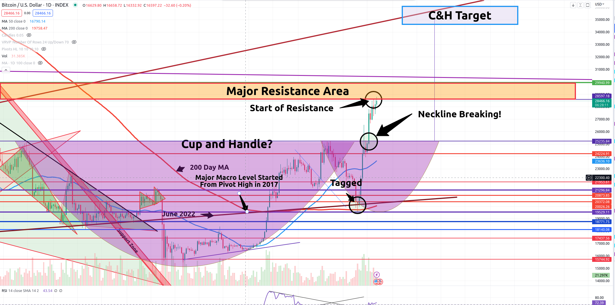 I’ve chosen not to get greedy and test fate here. We are in clear resistance. We are overbought on the RSI. We have the Fed decision in less than 30 minutes. AND I do expect a retest of our neckline. I’m out of my BTC trade with 40% profit from my entry a few months ago.