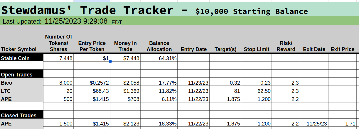 Trade Alert - Taking Profit on APE
