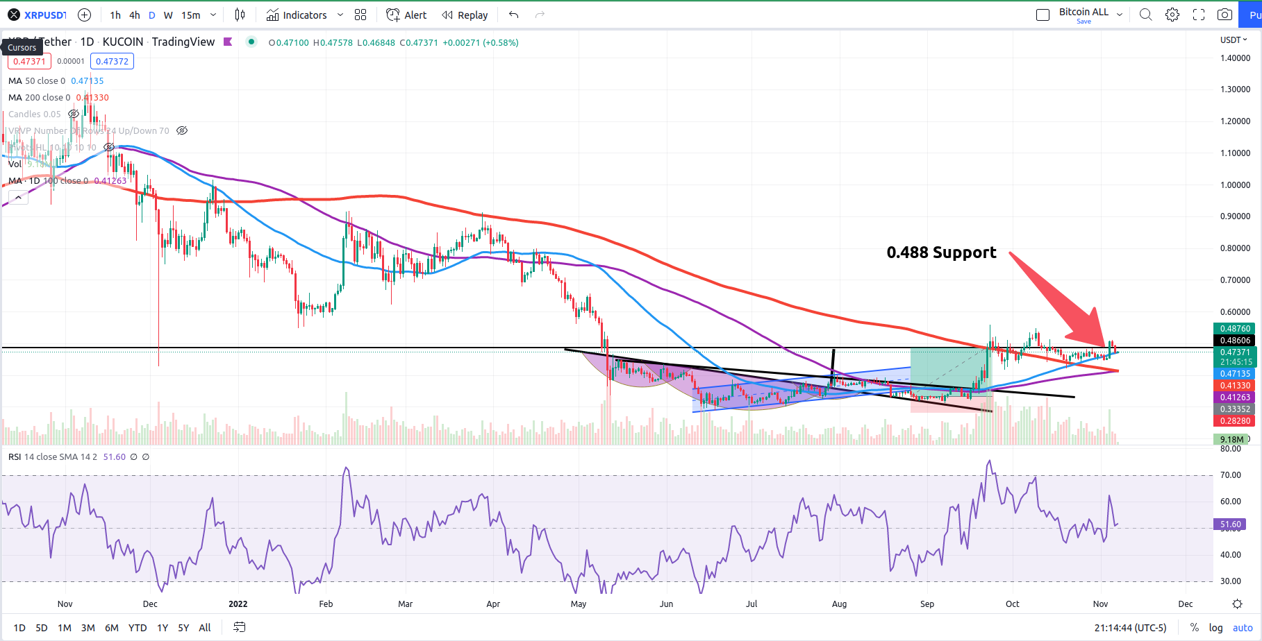 First XRP. My order was triggered at this .488 support