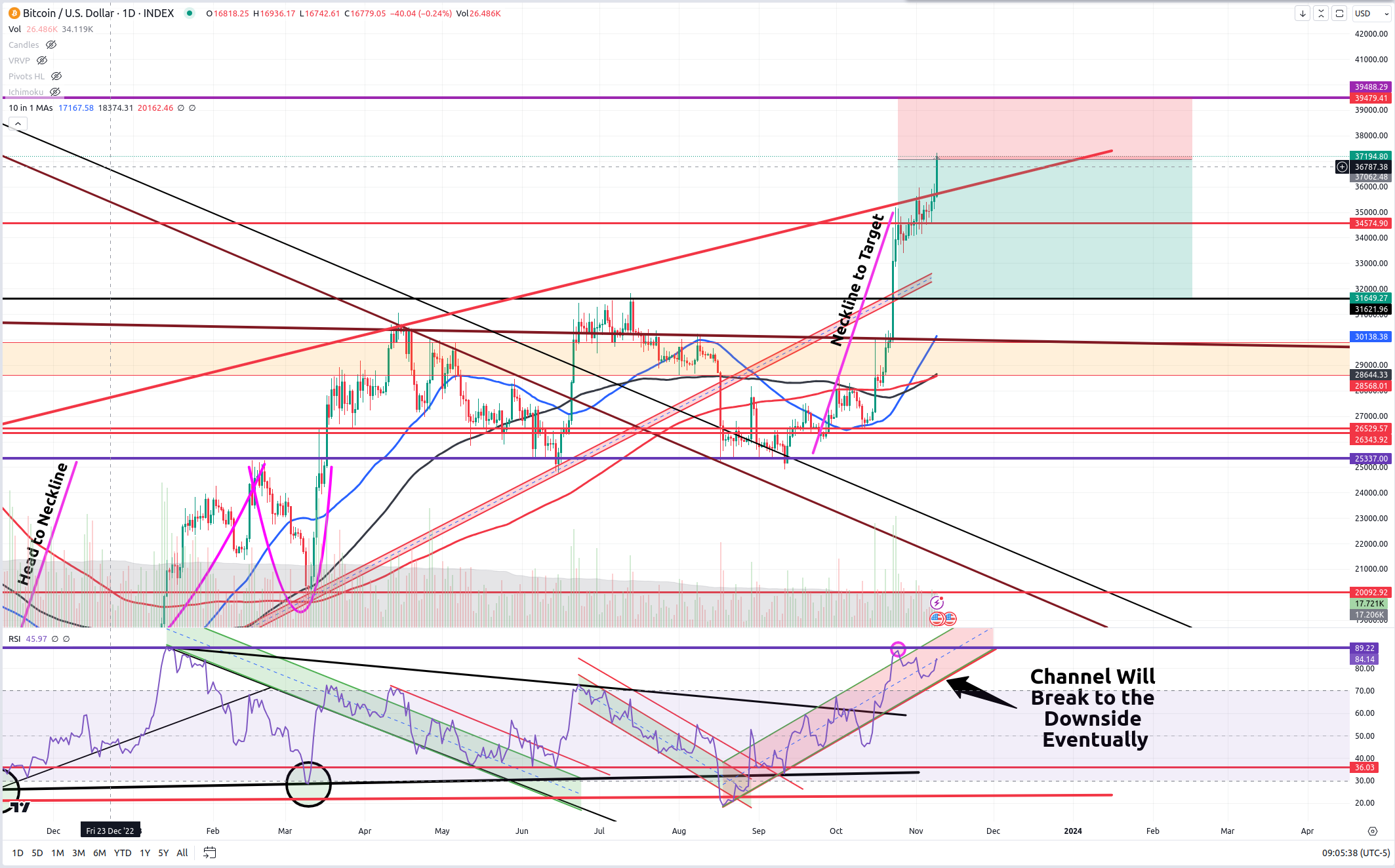 #3 - In addition to reaching our inverse H&S target, you all know I have been predicting a $37-40k price target by the close of the year. Well, we have that now. Though, I must admit, I never thought it would come like this and that is why there is some validity to the HODLer arguments to buy and hold. This is also why I have much of my crypto being held and not used for trading.